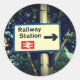 A photo of a UK railway station sign treated with an attractive digital cross-process effect, vignetted and given a black border, creating a nice retro feel.