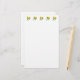 Stationery shown in basic white paper with a cute sunflowers print bordering the top.
