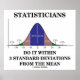 Showcase your wry statistical side with a dose of suggestive humor with this poster featuring the bell curve (Gaussian curve, normal distribution curve) along with the truism stats saying: 'Statisticians Do It Within 3 Standard Deviations From The Mean". Make others do a double-take about exactly what statisticians do when they think about statistics with this geek humor poster today! No need to be an average statistician to enjoy!