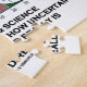 Wry stats humour jigsaw puzzle featuring bell curve (normal distribution curve, Gaussian curve) and the definition of statistics: "The Art & Science Of Finding Out How Uncertain The World Really Is". No need to be a statistician or statistics major to enjoy!
