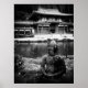 Statue in Front of the Buddhist Temple, Oahu B&W Poster