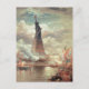 This patiortic vintage painting is by Edward P. Moran. This is a scene of the Statue of Liberty surrounded by boats flying Old Glory. Smoke from cannons surround the base. The sky is filled with clouds and rising smoke. Edward P. Moran lived from 1829-1901.