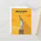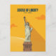 Stylized graphic illustration of the Statue of Liberty (EST 1886) set against a bright, warm yellow background with clouds. Vintage travel poster aesthetic.
