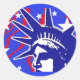 Cool stickers feature a stylised image of the Statue of Liberty, in red, white and blue. Use the CUSTOMIZE IT tool to edit, add text, make them personal!