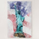 Statue of Liberty Enlightening the World in New York City with waving American flag in background Watercolor Portrait