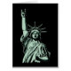 The Statue of Liberty in a heavy metal rocking pose. Vector style drawing, in a lovely green patina, on t-shirts, hoodies, stickers, gifts.