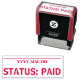 This simple, plain rubber stamp design features the messages "STATUS: PAID" and a line where a payment date can be written. It could perhaps be used to indicate that a bill or invoice has been paid.