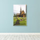 Canvas print of an old wooden stave church with a graveyard in front of it with tombstones in Lom, Norway.