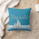 "Stay Awhile" text in a rope design with a sailboat on ocean water.