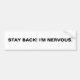 STAY BACK! I'M NERVOUS. BUMPER STICKER