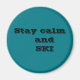 For the skier in your family or you: Standard, 2 1/4, round magnet with Stay calm and ski quote on blue background.