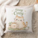 Stay Cozy Cute Kitty Cat Pink Gingham Sweet Home Cushion