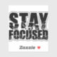 Stay Focused - Motivational Phrase with Black Text Sticker. A great gift to help motivate a friend. If you like this design and want it on another product or in a different colour email us at tuniversedesigns@gmail.com
