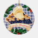 Super yummy blueberry pie ala mode with custom text, gingham and holly background on this culinary Christmas ornament for pie lovers, your favourite baker and vintage food lovers.