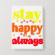 Spread positivity wherever you go with this bright and cheerful "Stay Happy Always" design. Featuring bold colourful text with stars and floral elements, this design is perfect for T-shirts, mugs, hoodies, and more. A great gift idea to lift the spirits and bring a smile!