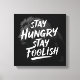 Channel the timeless wisdom of Steve Jobs with this bold "Stay Hungry, Stay Foolish" canvas print! Designed with striking minimalist typography and a clean layout, this piece transforms any space into a hub of motivation and creativity. Perfect for home offices, living rooms, or dorm walls, it serves as a daily reminder to embrace curiosity and ambition.