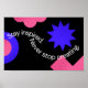 Blue Pink and Black Chaotic Swiss Curved Text Wallpaper