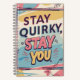 Embrace your individuality with this playful "Stay Quirky, Stay You" spiral notebook! Featuring a vibrant, colourful design with bold typography, it's perfect for journalling, school notes, or creative writing. A fun and empowering gift idea for students, artists, or anyone who loves being their unique self. Ideal for back-to-school, office, or daily inspiration. Stay bold. Stay you!