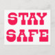 NewparkLane - Postcard with Stay Safe quote in fun, red barn style typography. A nice card to send your loved ones during this corona virus pandemic lockdown / quarantine period for a little encouragement or simply to let them know you are thinking of them.