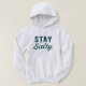 Whether you're salty from the sea breeze, or full of salty attitude, this graphic print 'Stay Salty' hoodie sweatshirt is for you. The lightly distressed teal vintage and modern fonts create a playful, subtly sarcastic statement. Perfect for anyone who lives in flip flops and a laidback coastal mindset.
