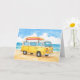 This greeting card features a watercolor style portrait of a yellow hippie van with a surf board on top and the message "stay salty" written on the front bumper.