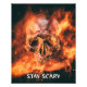 Stay Scary text can be customised by you. Flaming skull in space design.