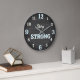 Large numbers in ivory and light turquoise stand out beautifully against the dark background, making the clock easy to read while adding a modern sporty contrast. The motivational phrase Stay Strong appears in matching ivory and turquoise tones, reinforcing the powerful fitness message.