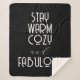 Wrap yourself in luxury with our "Stay Warm Cosy and Fabulous" blanket! This warm and soft blanket is the epitome of comfort, style, and wit, offering you the perfect combination of cosiness and sass. Customisable colours allow you to pick the one that matches your unique personality and home decor, while the ability to personalise the quote lets you add your own touch of flair. Want to change "Stay Warm Cosy and Fabulous" to "Stay Toasty Trendy and Dazzling"? Go for it! The quote will remind you to embrace your fabulousness and add a touch of humour to your daily life. So, whether you're lounging on the couch, snuggling in bed, or just need a quick pick-me-up, this blanket will be your faithful companion. Get your hands on this stylish and witty blanket today and stay warm, cosy, and fabulous!