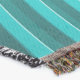 A quality printed throw has its advantages. This is a much finer weave throw than its loopier cousins, and though lighter, it is worth the investment for custom room accessorizing. The back is much prettier than the typical brown, and the fringe on the long sides very vivid, the selvage nicely done. Before photographing, I washed the throw in cold water, delicate, with a thicker woven throw the same size. On tumble dry low, this throw was dry in half the time as the other. This is a very practical quality if you use throws for furniture covers or to wrap up in frequently. The sleekness of the fabric makes it a great layer for accenting or protecting without the feeling of sitting on too much stuff. Perfect for napping or when you feel a light chill coming on. The color printing is beautiful and on this fabric, matched the design and color of my Photoshop image. This is an advantage for blending room fabrics and colors. The fringe on the short sides prints the colors from the design image and therefore varies from the side fringe. I streaked a white fractal line through the plaid pattern to give the illusion of weaving. This printed as crisp as an illusory thread, and put some white in the short side fringe, showing another advantage of print vs loomed- for artistic purposes, line lines, detail, and color integrity can be planned and preserved. My loomed throws have color limitations and more of a needlepoint texture. Print throws reproduce an exact image. The throw felt a little stiff straight out of the package, but this went away in the first delicate wash. Of course I searched the wash water for ink or bleeding and there was none.