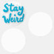 A set of large circle waterproof labels with "STAY WEIRD" in blue text, great for laptops, water bottles, or gifts.