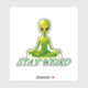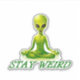 A green alien in a zen yoga position. The words underneath him say stay weird. For the wonderful people in the world who have that special brand of weird.