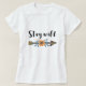 Stay wild t-shirt featuring hand-drawn boho style arrows and flowers and text in modern calligraphy.