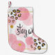 Stay wild, leopard print, pink circles small christmas stocking