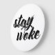Do you wish other people would stay informed of things that are going on in their neighbourhoods and the world at large? This modern elegant scripted typography design clock with the words "stay woke" sends out that exact message. Customise this design by adding your own text.