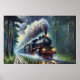 Steam Train in the Rainy Forest at Night - Choose the poster size you want.
