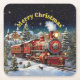 Steam Train Man's Christmas Party Square Paper Coaster