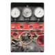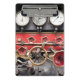 The steam train drivers view from the footplate of the gages and controls of the train.