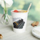 A black steam train going along the tracks. This design looks really effective on these Paper Cups