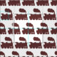Steam Train Pattern - Dark Brown on White Fabric