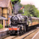 An art design of a beautifully restored steam train and carriages.