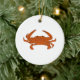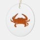 This seafood ornament features a bright orange steamed Atlantic blue crab, also known as hard or Maryland crab.