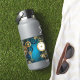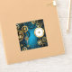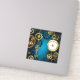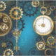 Turquoise, textured, steampunk background with brass and gold gears, a silver key and the clock. Steampunk style.