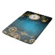 Turquoise, textured, steampunk background with brass and gold gears, a silver key and the clock. Steampunk style.