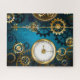 Steampun turquoise Background with Gears Jigsaw Puzzle