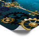 Turquoise, textured, steampunk background with brass and gold gears, a silver key and the clock. Steampunk style.
