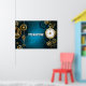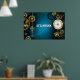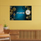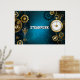 Turquoise, textured, steampunk background with brass and gold gears, a silver key and the clock. Steampunk style.