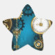 Turquoise, textured, steampunk background with brass and gold gears, a silver key and the clock. Steampunk style.