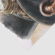 This tissue paper features a steampunk-style watercolor painting of a distinguished chimpanzee in vintage Victorian attire. The chimp's intense golden eyes and detailed facial expressions are brought to life with rich, textured brushstrokes. Dressed in a classic leather coat with brass embellishments, a crisp white shirt, and an ornate cravat, the simian character exudes an air of sophistication. Topping off the look is a stylish top hat fitted with intricate brass goggles, adding to the steampunk aesthetic. The background blends earthy browns and sepia tones with artistic splatters. Perfect for steampunk enthusiasts, and ape fantasy art lovers, this watercolor artwork combines whimsy with elegance.