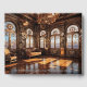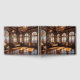 Enjoy inviting your visitors to write a message or comment in this vintage-inspired Steampunk guest book. With a cool retro industrial aesthetic, the book features an elegant and detailed picture of a large ballroom. Steampunk cogs, gears and shiny metalwork are incorporated into the design, along with reflective polished wood, ornate arched windows, classic furniture and a mechanical-looking vintage chandelier. Customise with the name and venue on the back for the finishing touch.