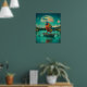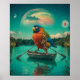Steampunk Bird Rowing Surreal Lake Cosmic Poster